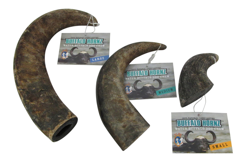 Water Buffalo Hornz are fast becoming the everyman's Antler. They are an affordable, long lasting, and tough dog chew. Whole Large Hornz average one pound in weight and are ideal for large agressive chewers.